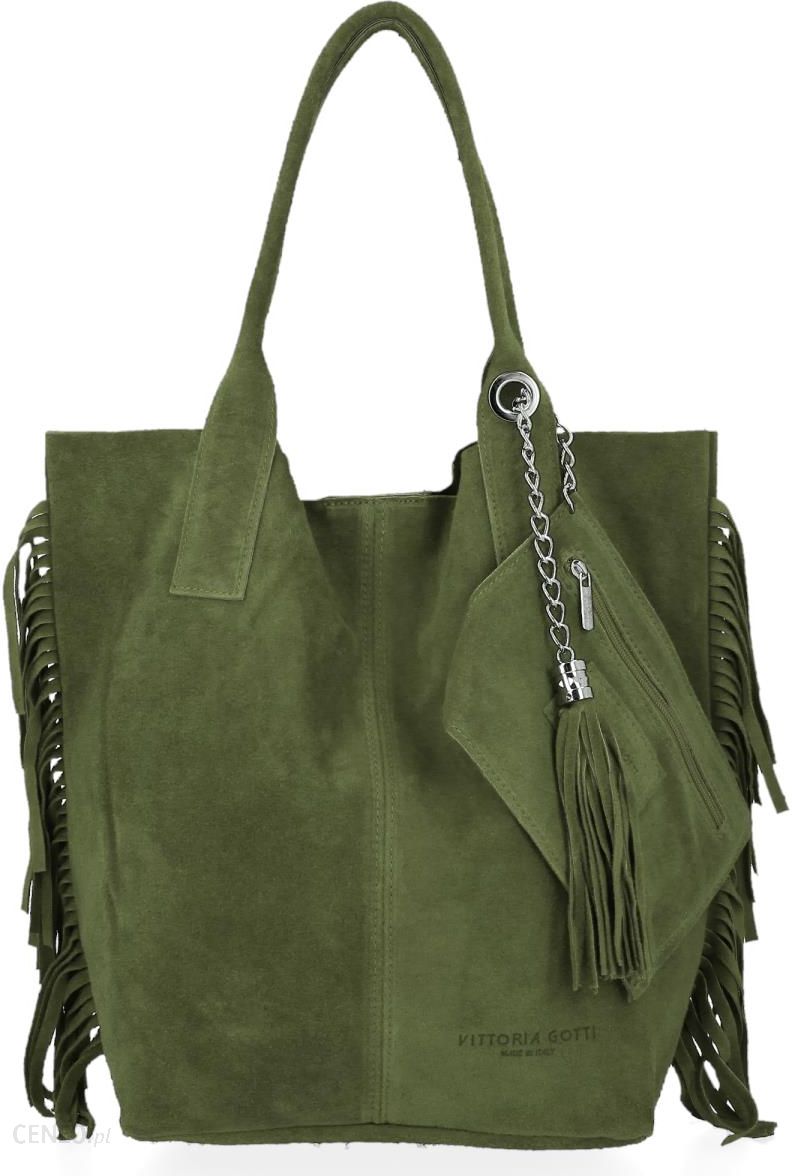 Szukasz pojemnej torebki, która sprawdzi się w codziennych sytuacjach? Takiej, która jednocześnie podkreśli Twoje wyczucie stylu? Jeśli tak, ta skórzana torebka shopper bag została stworzona z myślą o Tobie! Model renomowanej firmy Vittoria Gotti wyróżnia się precyzją wykonania oraz intrygującym designem. Miękki zamsz naturalny jest wytrwały i przemiły w dotyku, a frędzle po bokach wyglądają stylowo. Atutem jest także pojemny rozmiar XL, który pozwoli Ci swobodnie przechować najważniejsze rzeczy. Wyjście do pracy, na zakupy, a może cały dzień planujesz spędzić poza domem? Ta torebka skórzana w stylu boho sprawdzi się doskonale!…
